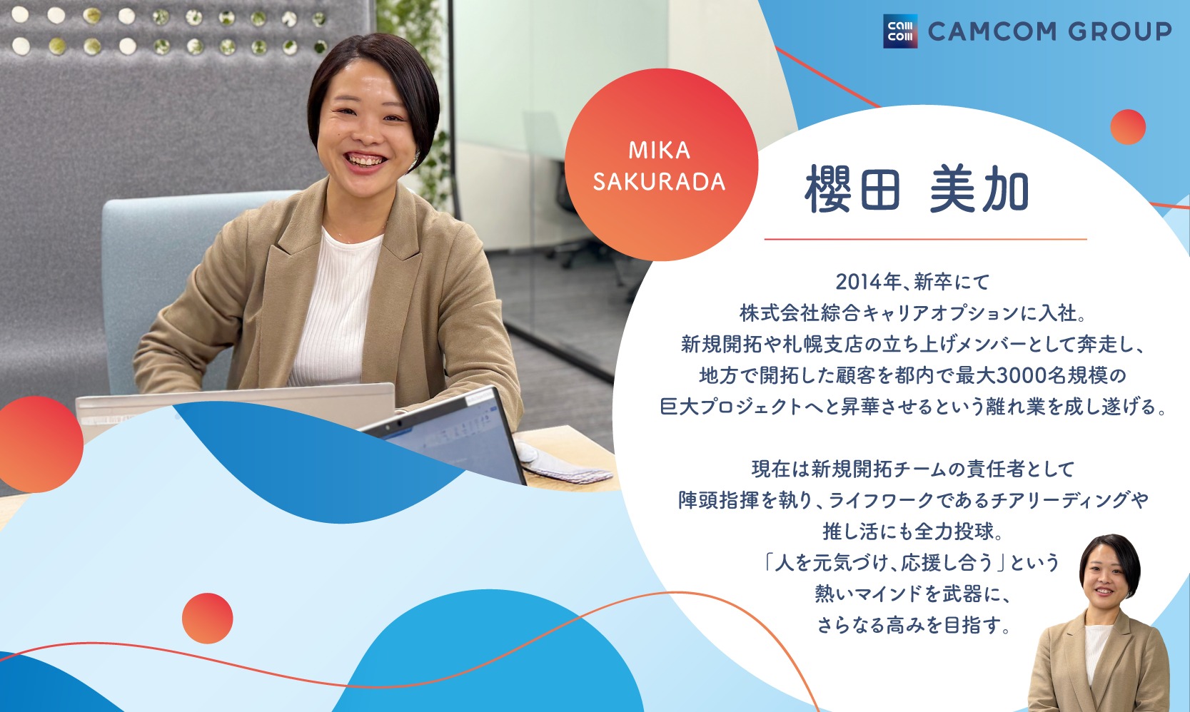 「出る杭を伸ばす」文化に惹かれ、キャムコムグループへ入社した櫻田美加(サクラダミカ)さん 。