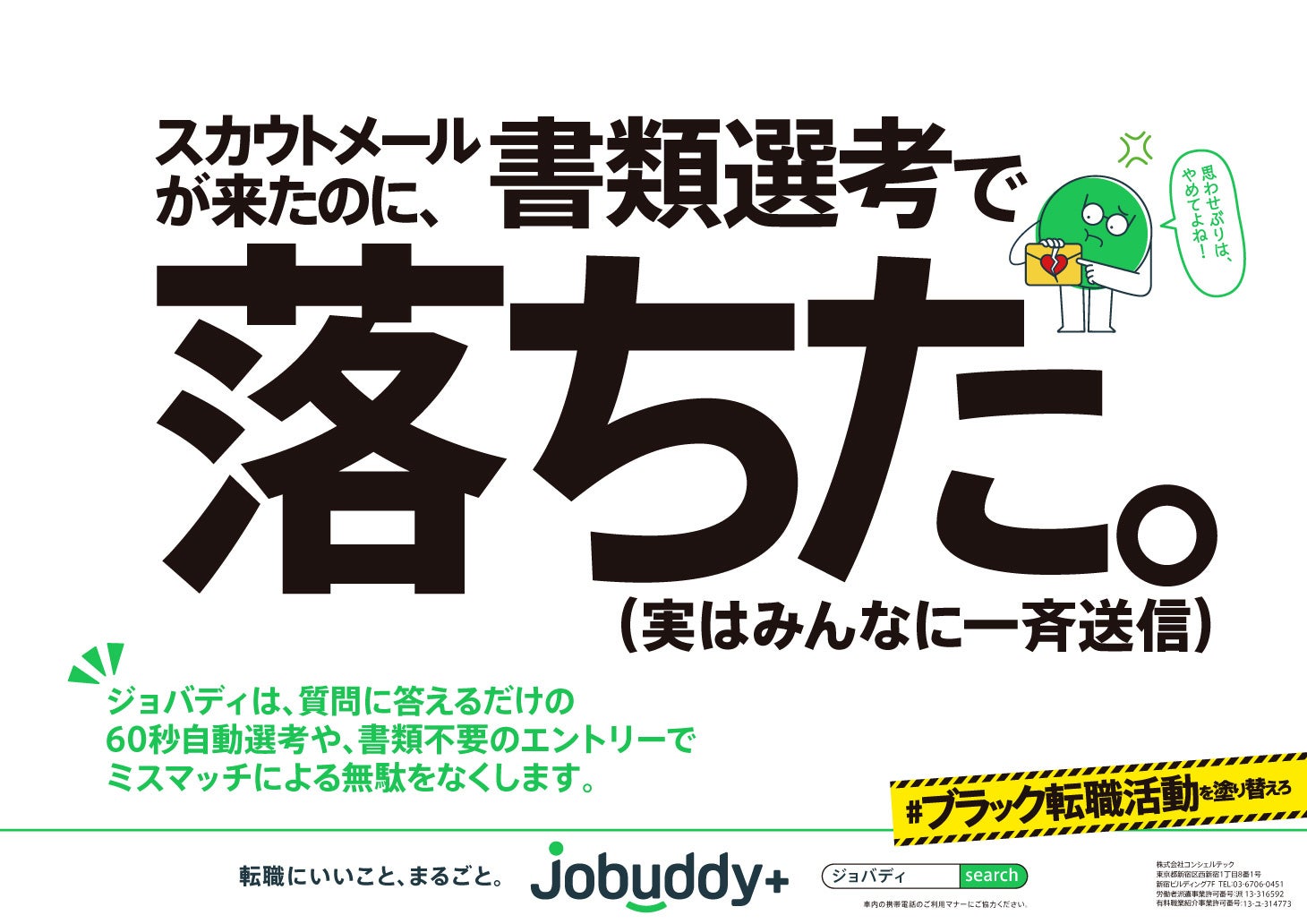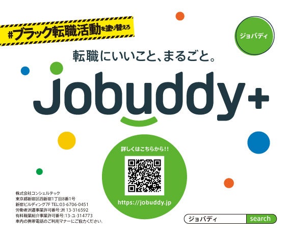 「働く」に関する社会課題をビジネスで解決するキャムコムグループの株式会社コンシェルテック(本社: 東京都新宿区⻄新宿、代表取締役:⼩杉哲央、以下コンシェルテック)は、採用担当者・求職者にとってより使いやすく、⼼強いサポートを提供する転職⽀援サービス「Jobuddy+(ジョバディ)」のJR京浜東北線・根岸線トレインジャック広告キャンペーン「#ブラック転職活動を塗り替えろ!」を開始します。※