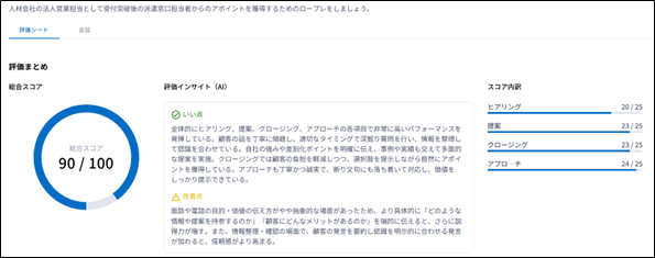 「amptalk coach」による営業ロールプレイングのフィードバック画面