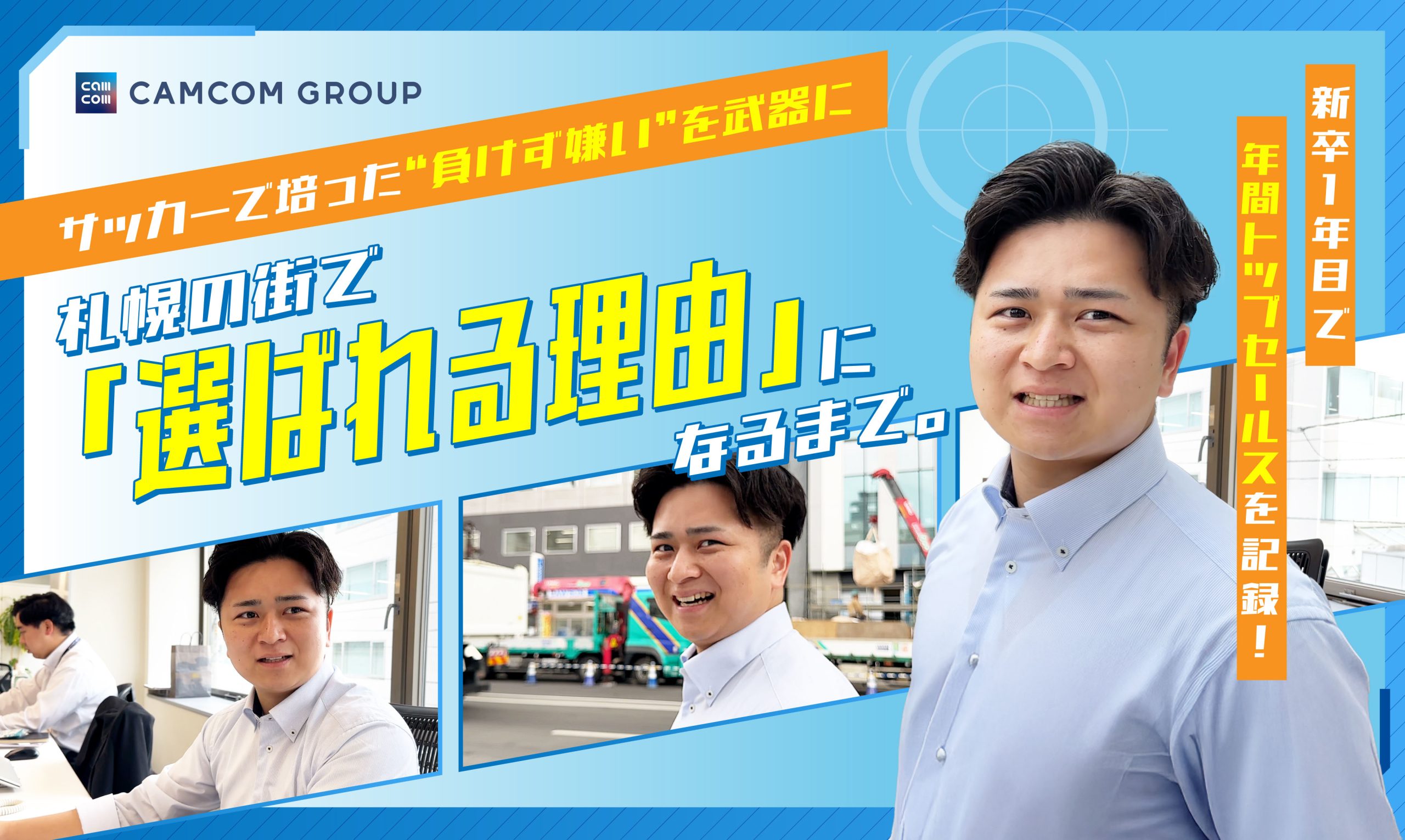 この記事でわかること 同期トップの営業成績を収めた若手が語る、急成長の裏側 サッカー経験者が惹かれた、キャムコムグループの「チーム制」 仙台・京都を経て、…